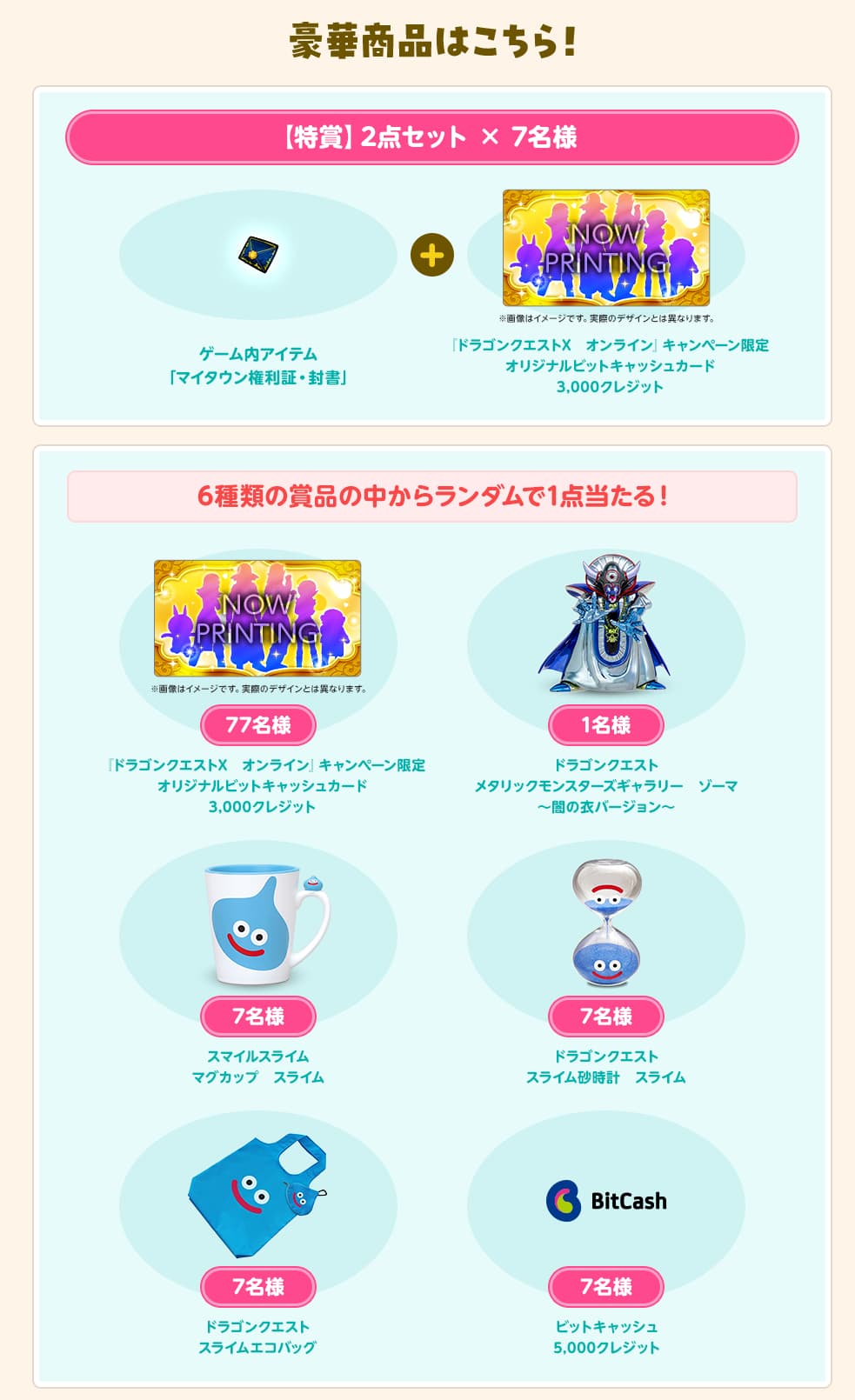 他にも抽選でこんなアイテムが貰えたりします。他にもDQXショップで5000円以上買い物をするとゼルメアの聖紋やらふくびき券やらメタル迷宮招待券やらが貰えたりも…まあ5000円以上欲しいものがあることなんてほぼないので私には関係のない話ですが機会があれば狙いたいものです。