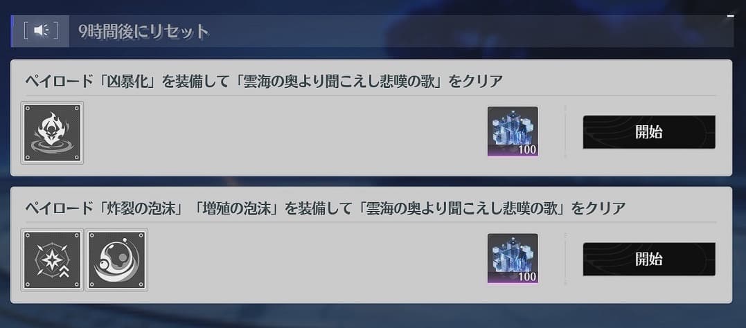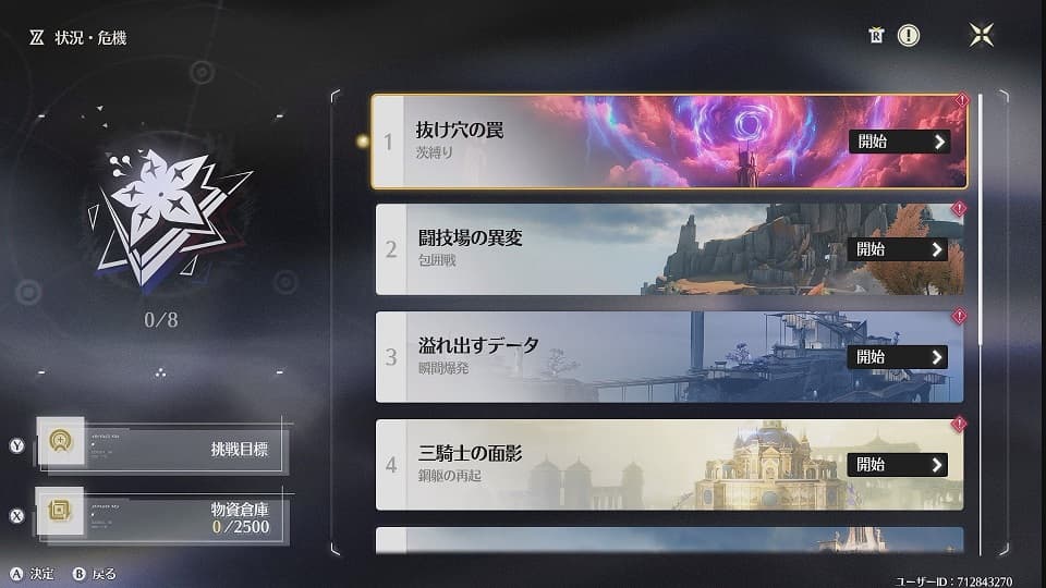 状況危機はパーティのバフ要素となる支援モジュールやデバフ要素となるペイロードを獲得するためのステージでデバフを任意で積むことも出来ないし難易度はかなり低めになっています。1度クリアして支援モジュールやペイロードを取ったら終わりみたいですね。