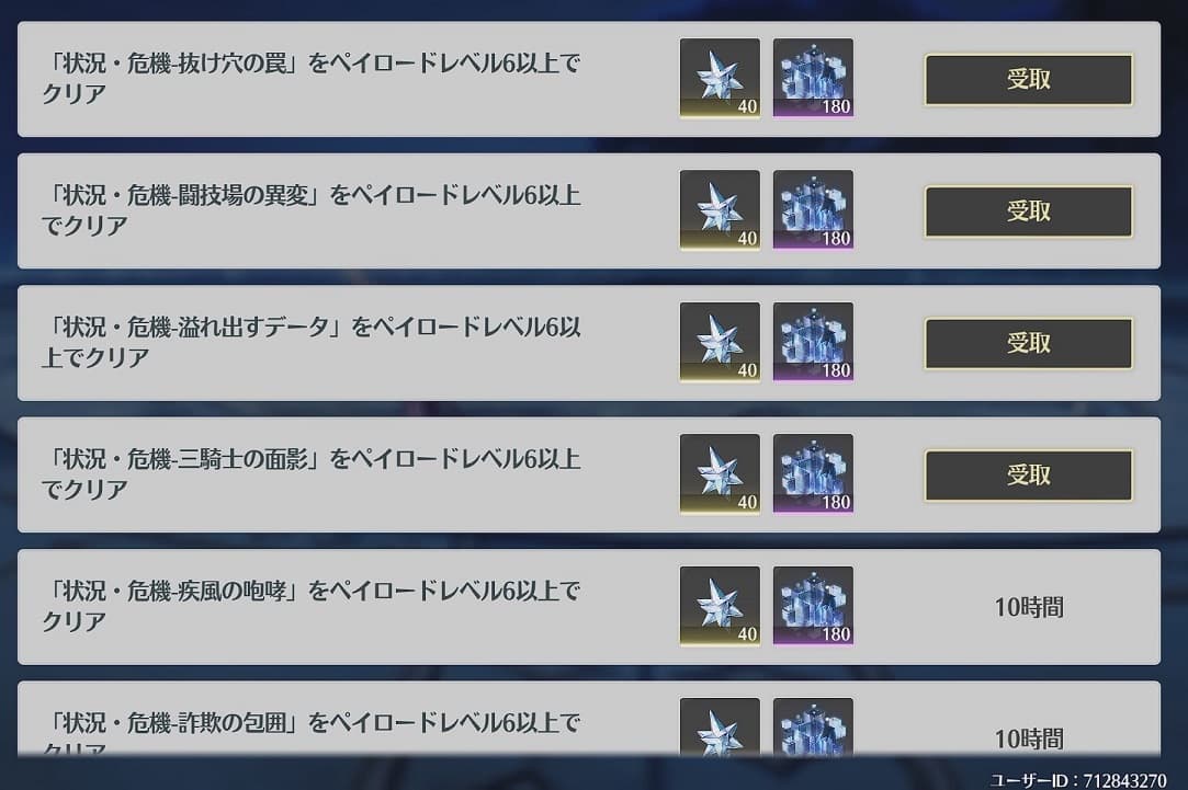 ちなみに石はこの状況・危機のクリア報酬でしか直接貰えないので石狙いならここだけ狙えばよいのかな。イベント用の通貨もここで貰うことが出来ます。
