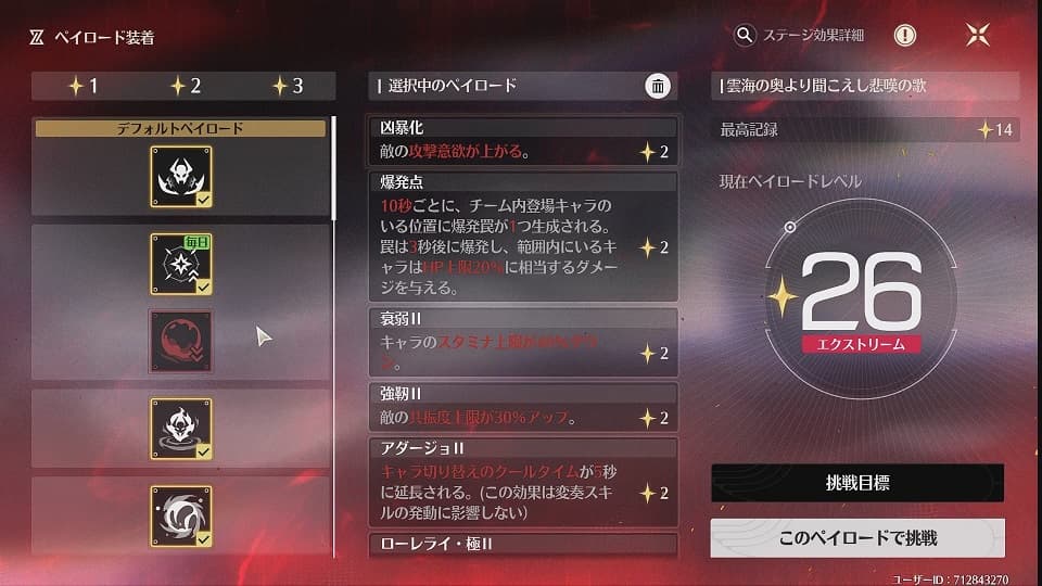 デバフ効果には数値が割り振られていてそれをどれだけ盛れたかでペイロードレベルが変化していきます。現段階ではおそらくペイロードレベルは最高で26。合計だとレベルは52になると思います。