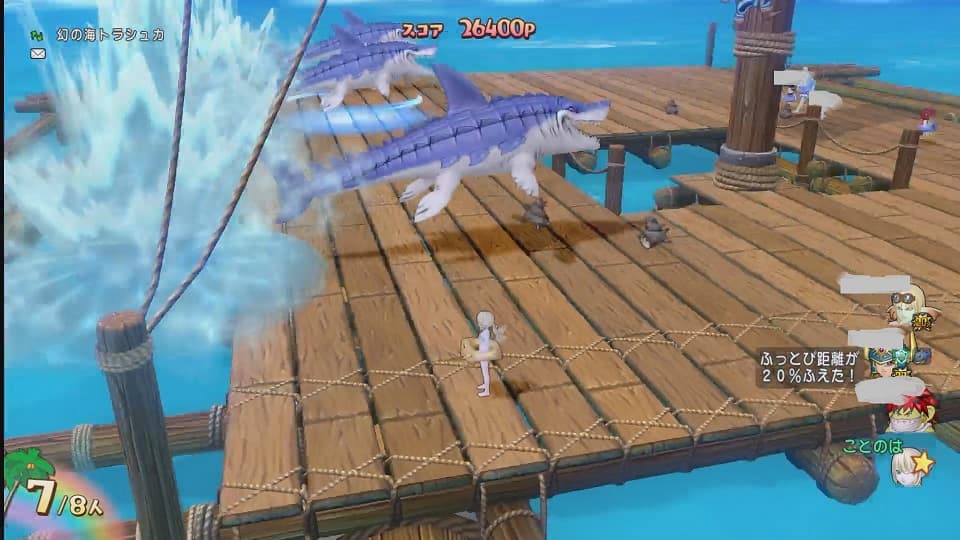 最高順位は2位でした。雷のせいで浮き輪の選択に最後まで悩みましたよ。雷は近づかなければどうということもないけどそう考えているとビリビリで麻痺しちゃうしなかなか難しいです。サメの当たり判定の発生のタイミングも慣れないせいでボッ立ちの時間が多かったかも。