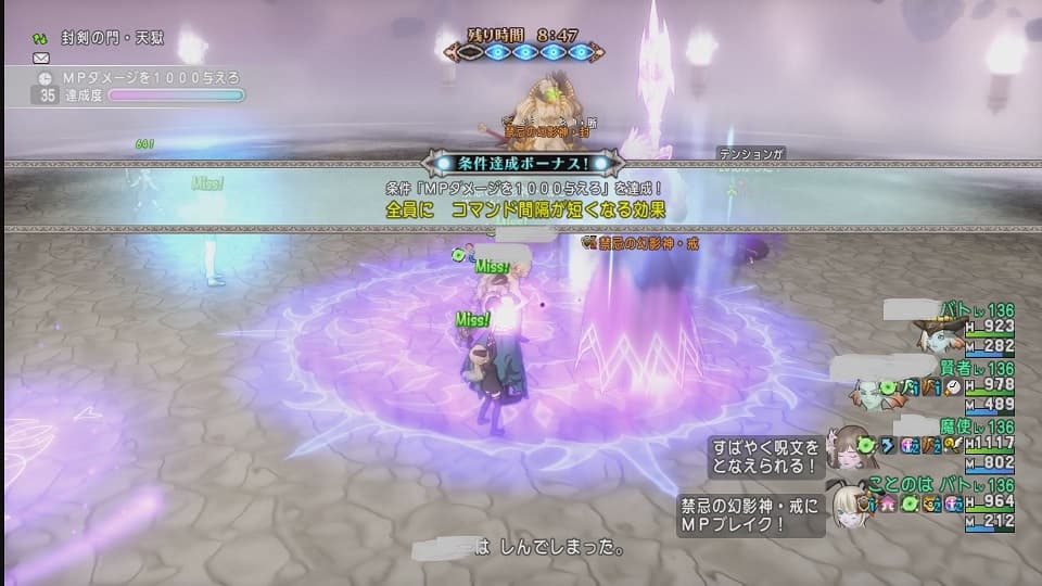 天獄のボスは″禁忌の幻影神″です。3体のボスをほぼ同時くらいに倒していかないと蘇生されてしまい延々と戦い続けることになってしまうアイツです。必要体制は呪い・即死・呪文or闇です。