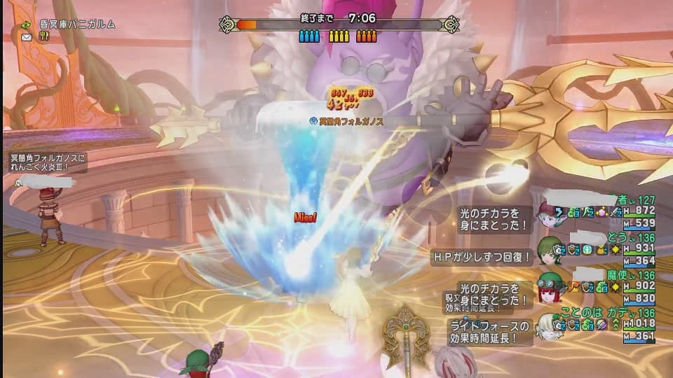 白チャで教えてくれる人もいました! …だからこのパターンがもし間違っていても私だけが悪いわけではない…かもしれない。ともかくグングニルの来るパターンが分かってきた所であと17周、2時間も掛からずに周回が終わるわけですがなんかあっという間の日々でしたよ。※考えた結果顔の画像は消した方が良いかなと。