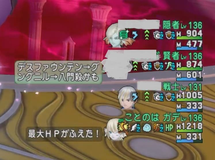グングニルはHPが半分に減った状態から″深淵の号令″で12人のPTメンバーを集めたところで、デスファウンテン⇨グングニル⇨八門殺の順番で使用して来ることが″多い″です。