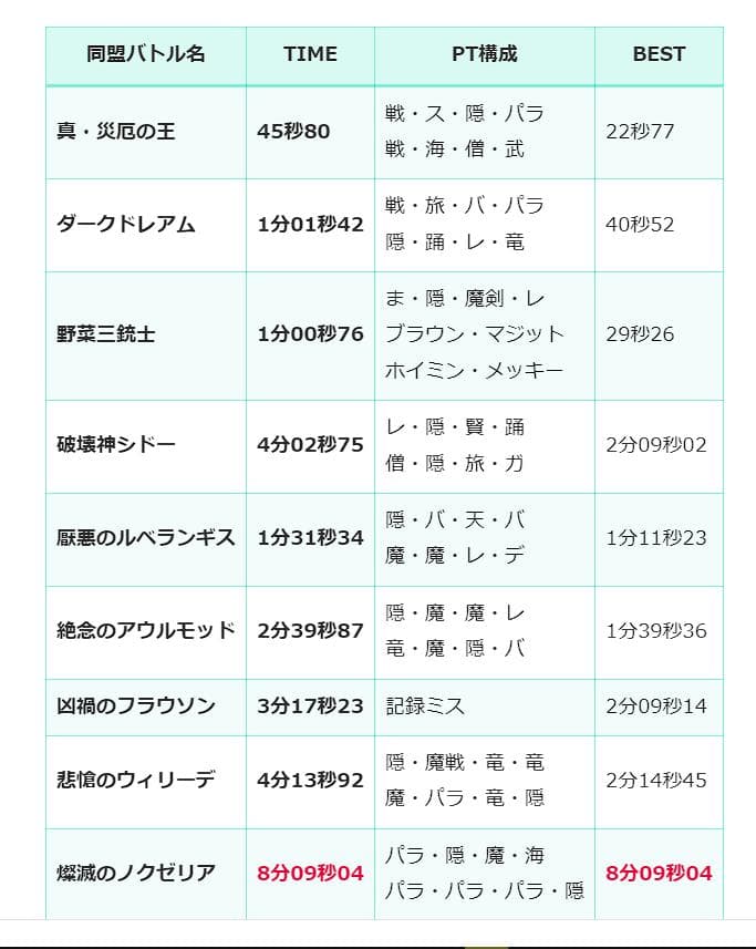 明日のノクゼリアは強さ2の日ですけど1に初めて勝って周回を重ねて生まれた疑問を解消するための時間がいまは欲しいです。そして気になる討伐タイム。巷の噂ではノクゼリアのHPは強さ1と強さ2ではあまり違わないみたいですがそれでも今のタイムでは討伐は遠いらしい…。とにかく死にすぎです。
