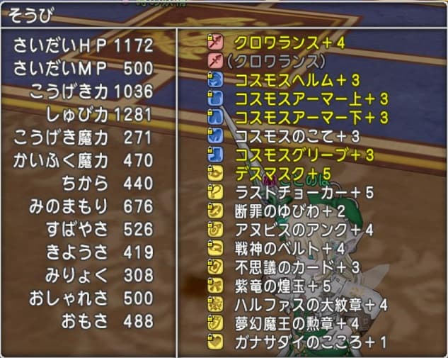 装備はちょっとだけ見直しました。赤竜の首かざりからバトルチョーカーにセトからアヌビスへ。体下は守備にしました。まあただの猿真似です。HPも上限があるらしく(1217以内)調整が必要みたい。パラ装備は素早さ重視素早さ盛り推奨みたいですが足は移動速度が無いと立ち回りに支障が出るので私にはちょっと難しいかも。