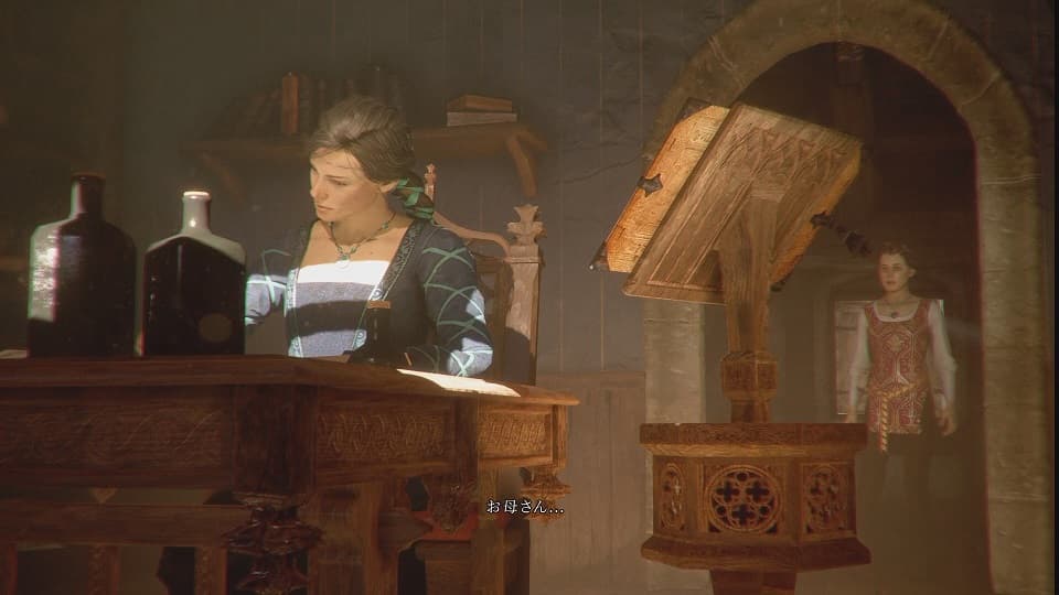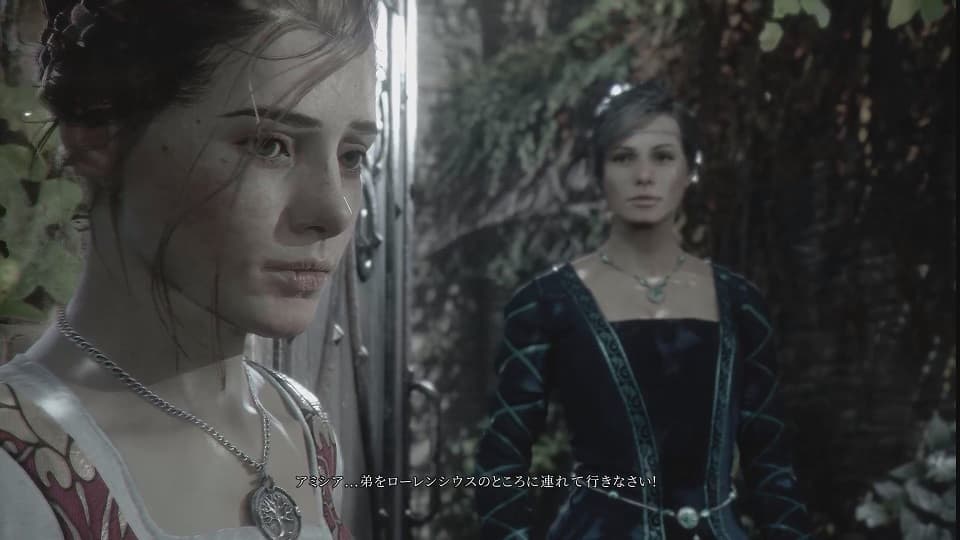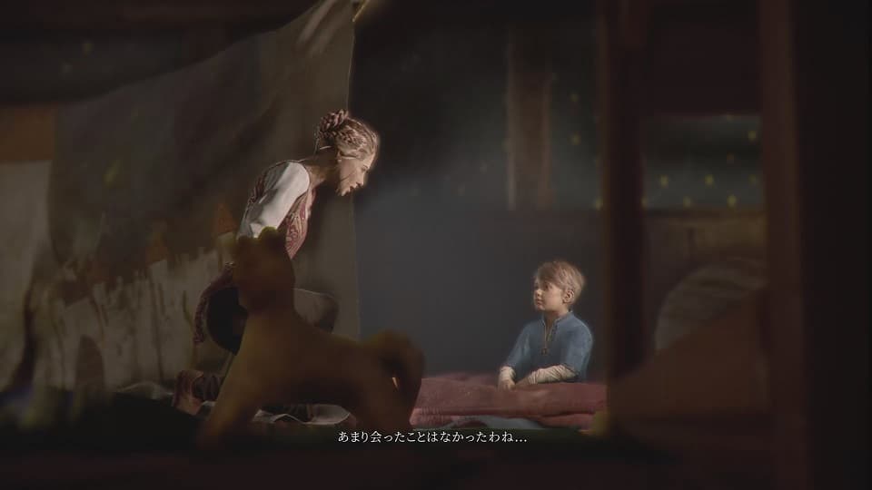 そこで母親と一言二言言葉を交わしていると外から物騒な物音が。母親が外の様子を伺うとアミシアにここに弟と一緒にいるように、そして扉に鍵をかけたら絶対に開かないように、と告げたあと何処かへ行ってしまいます。