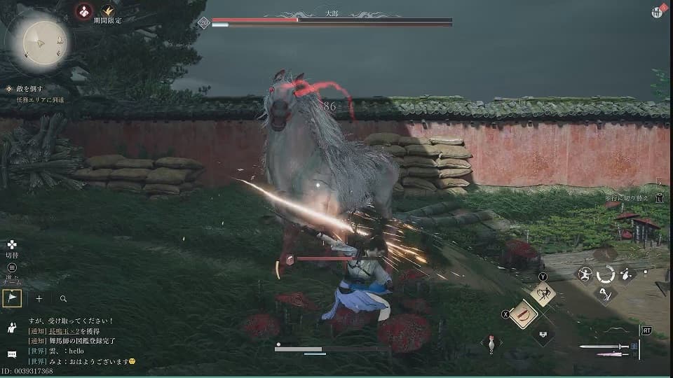戦闘はもろにSEKIROっぽいです。SEKIROの弾き…敵の攻撃に合わせて行うパリィみたいな技…を使っての戦闘が存分に楽しめます。弾きを使って敵の気力を0まで下げると大ダメージを与える技が使えるようになってその後また敵の気力が満タンまで回復して仕切り直し…みたいな流れになっています。