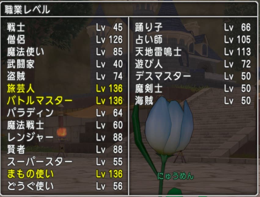 普通に経験値の通帳を使ってのレベル上げをするだけならば職選びに悩む必要はないのですが日課で結晶を作りつつとなると獄獣しか縫えないハルジオンしか彫れない私の場合、踊り子の育成が必須となります。獄獣とハルジオンが装備可能な踊り子をレベル80までは最低でも上げる必要があります。