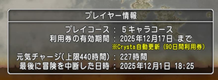 ドラクエ10の課金の中には特殊な契約となるものがあってこの経験値の通帳もその1つです。これはドラクエ10の月額の支払い契約とリンクしていて例えば私がいつも契約している3ヶ月ごとの更新の場合、経験値の通帳も1ヶ月では無く3ヶ月の契約になってしまう事を意味します。