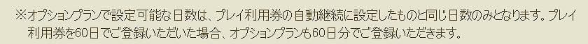 これです「オプションプランで設定可能な日数はプレイ利用券の自動継続に設定したものと同じ日数になります」利用券が3ヶ月ごとの更新だと経験値の通帳も3ヶ月分の契約になってしまうと、そういう事ですよ。