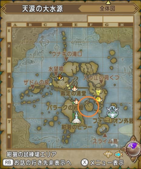 天涙の大水源征伐と天星郷であくま系討伐は天涙の大水源東から南西にある小島に生息するあかつきの神兵(あくま系)を倒すと効率がいいよ!