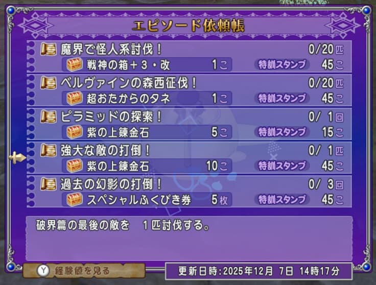 エピソード依頼帳は魔界で怪人系討伐!とピラミッドの探索!と強大な敵の打倒(破界篇の最後の敵討伐)!しかやらないよ!