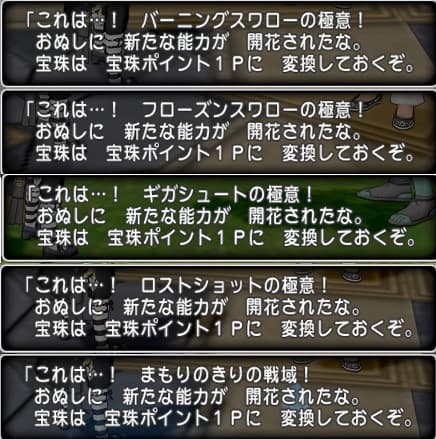 おばけヒトデ・強の所持する闇の宝珠はギガシュートの極意の他にデュアルブレイカーの極意、アゲハ乱舞系の真髄の2種があります。