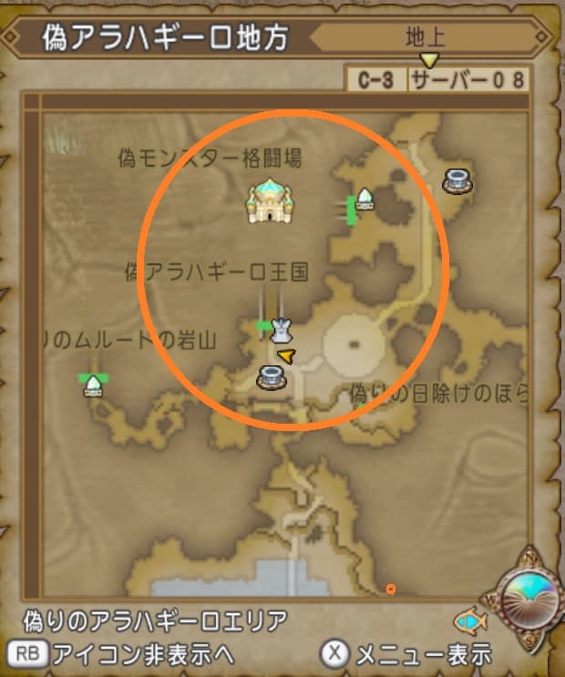 | まもりのきりの戦域 光の宝珠 | ケツァルコアトルス 昼のみ出現! | 偽アラハギーロ王国 ルーラストーン | 偽アラハギーロ 王国から出た直後のエリア |
