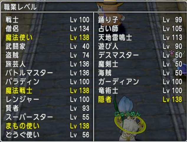 ただその重労働の甲斐あって隠者と魔法戦士のレベルを138まで上げることが出来ました。これでサブキャラのレベル上げを始めてから魔法使いを入れて3職のカンスト。どの職も色々な場面で活躍できる使い勝手の良い職で遊びの幅がどんどん広がって行くのを感じます。
