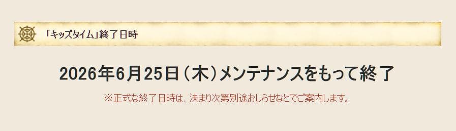 ともかく2026年6月25日(木)メンテナンスをもってキッズタイムは終了!(:3[▓▓]
