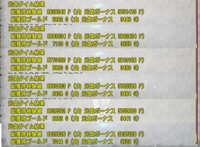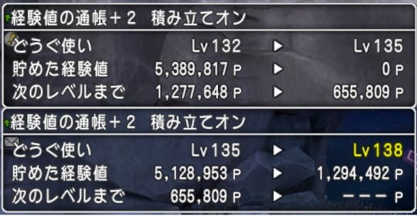 こちらが玉無し2回の獲得経験値です。