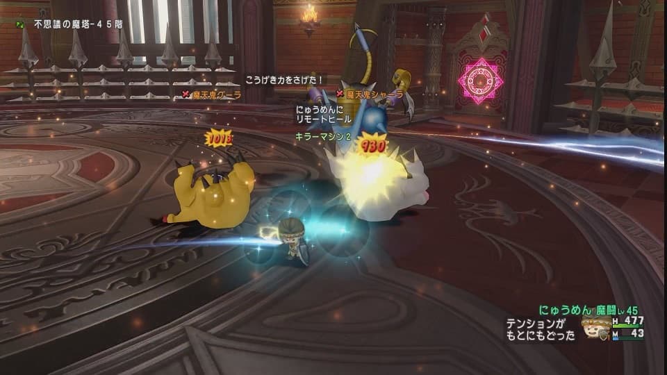 魔天鬼グーラと魔天鬼シャーラは2体同時に倒さないと復活してリンク状態になりもう仕切り直して戦う事になります。キラーマシンのツボや範囲攻撃で2匹を巻き込むように攻撃していくと1回で倒すことも容易です。2体の攻撃は貧弱で状態異常耐性があれば死ぬ可能性はほぼありません。