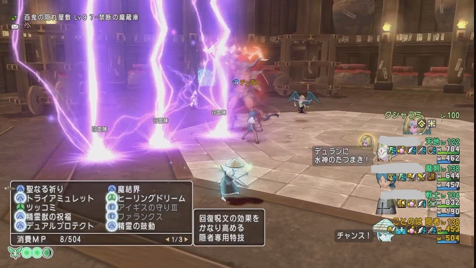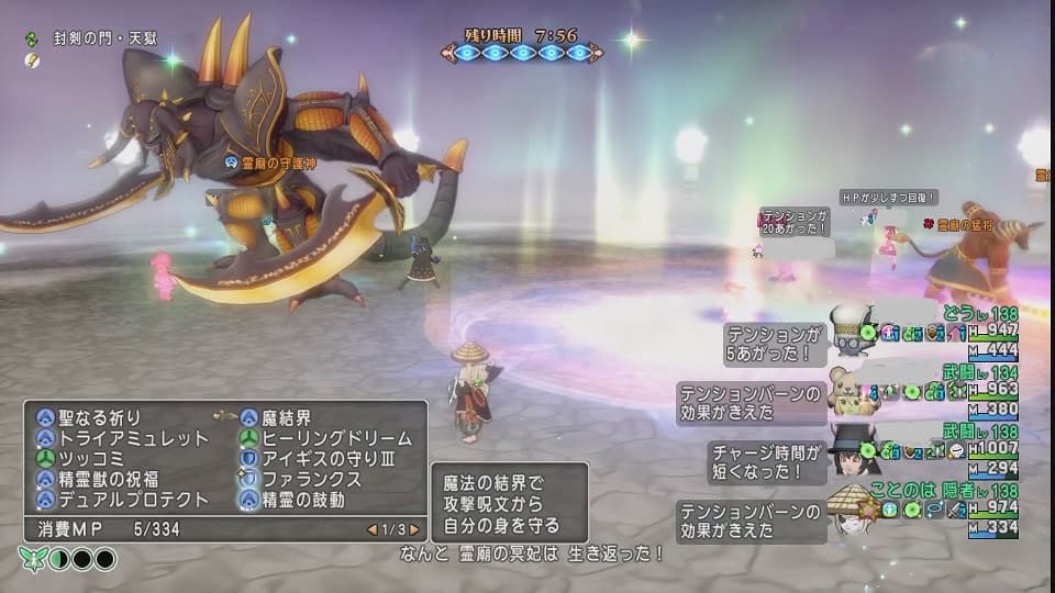 あっという間に半壊して「仕切り直しかな…」と思っていたところからの大逆転劇。ちなみに⇧のような光景を3周くらいしたんです。隠者(私)とどうぐ使いと隠者さんでの蘇生リレー。範囲蘇生持ちがどうぐ使いさんと隠者(ひっさつ)のみだったのでした。