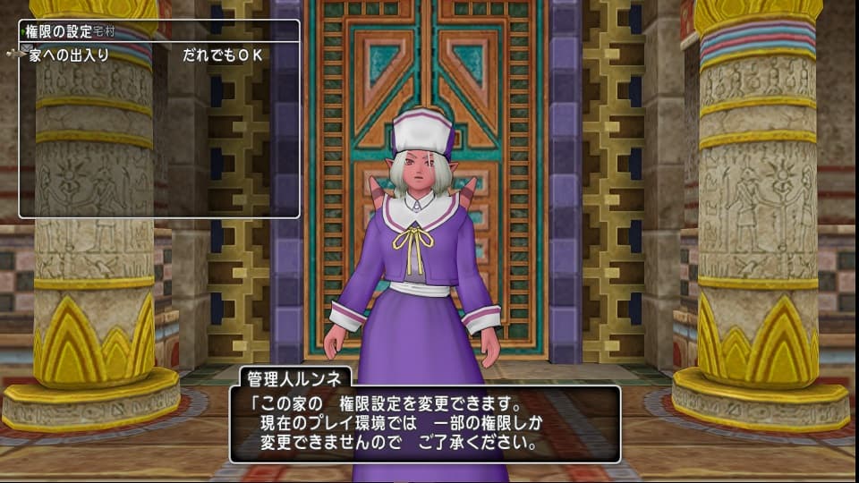 家を買ってタンスを置いてみたけど権限の設定がこんな感じ。家の出入り以外の設定は何も出来ないんです。マスオさん以上ノリスケ以下の権限ってこれ本当に私の家なのか? (ノリスケはなぜかタンスの権限を持っている)メインキャラことのはが復活した今となっては死に戻り設定もただお寒いだけですし同名の彼女の存在価値は限りなくゼロに近い状態です。一応残しておくけど彼女が日の目を見ることはもうない気がします。