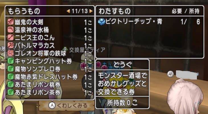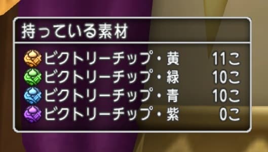 必要な個数はビクトリーチップ青17個なのでミルドラース1日2回撃破してそれを3日続けて全てのオシャレ装備を取ろうかなと考えています。1日で取るとかちょっと難しいかも。