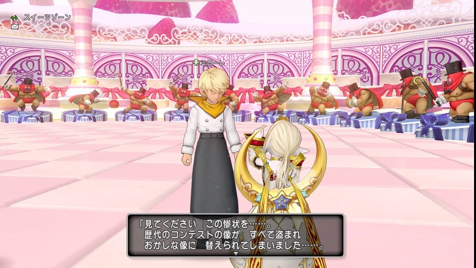 ホワイトデーイベントはいつも通り2つ目の町にいるメリルに「ハッピーホワイトデー」と白チャするところからスタートです。今回のホワイトデーイベントのクエは2部構成の完結編…正直このお話の行く末に興味なぞ全くないですがクリアしないとイベントに参加できないのでサクッと進めていきます。