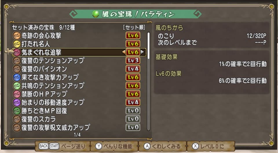 この戦闘が終わったあとすぐに追撃の宝珠を宝珠を入れてこの日4PTと遊びましたが素早さ600+ピオラと追撃の宝珠の威力はすごいと思いました。圧倒的…って程でもないけど痒いところに手が届く程度にはターン回りが良くなって攻撃したいけどコマンド画面が開かずボケーっと見ているなんて状況なんてほぼ無くなりました。