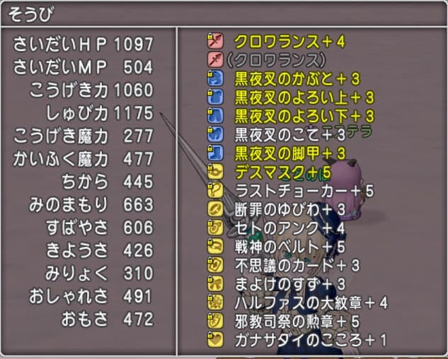 黒夜叉装備なんかよりも素早さアップと追撃の宝珠の方が火力アップの貢献度は高いんじゃないかなあ。追撃はバラシュナ強さ4で暴発=死のイメージが強くて苦手だったのですがミスもほぼ無かったし(死んだのは1回だけ)コントロールしやすかったと思います。