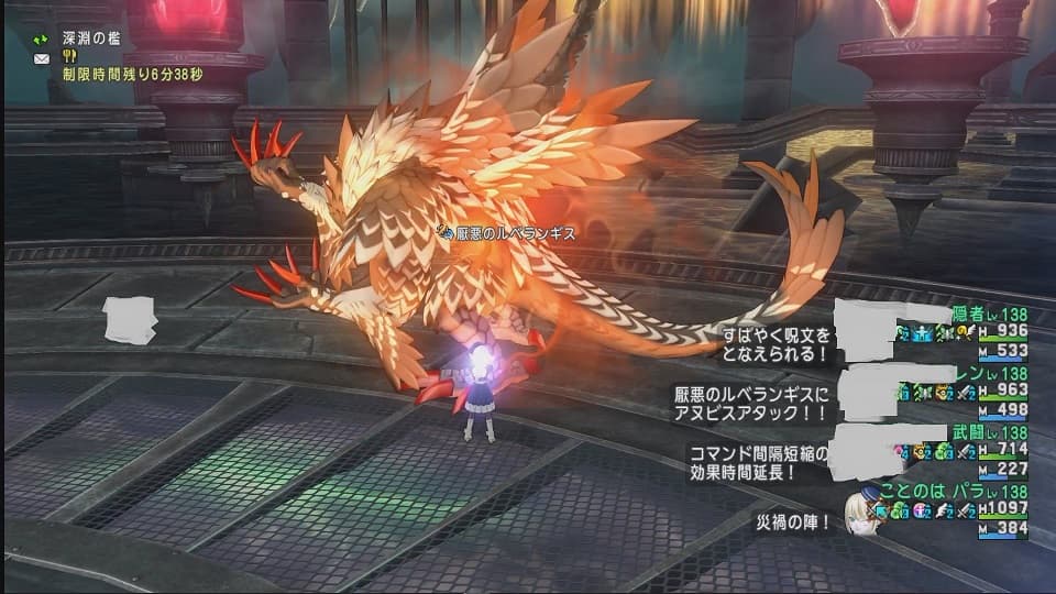 みっともないことこの上なしですがログアウトして30分くらいボケーっとしたあと再度ログインしてルベランギス強さⅢとバトルを再開しました。戦わないと上手くならないですし、とにかく場数を踏んで経験を積みたい、頭で考えるよりも先に体が動くようにしたい、という思いがあって見苦しくもログアウト逃走から復帰することにしました。