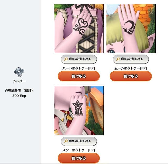 ブロンズで貰えるのがタトゥー。私は月を選びましたが使い道はあるかな?